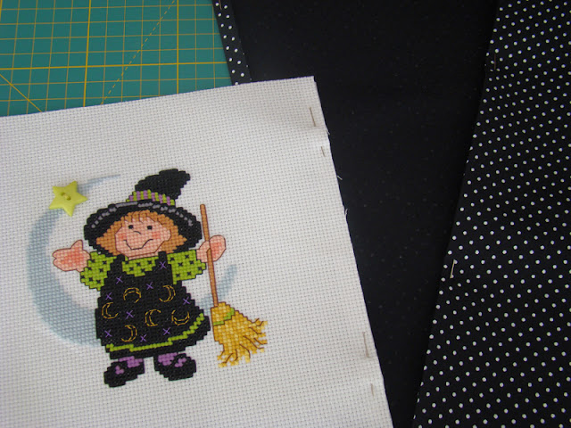 - White fabric, with the same height as the cross stitched piece and more 2cm wide. This won't be visible, it's only a layer so we won't see the print/color of the fabric that will be on the other side